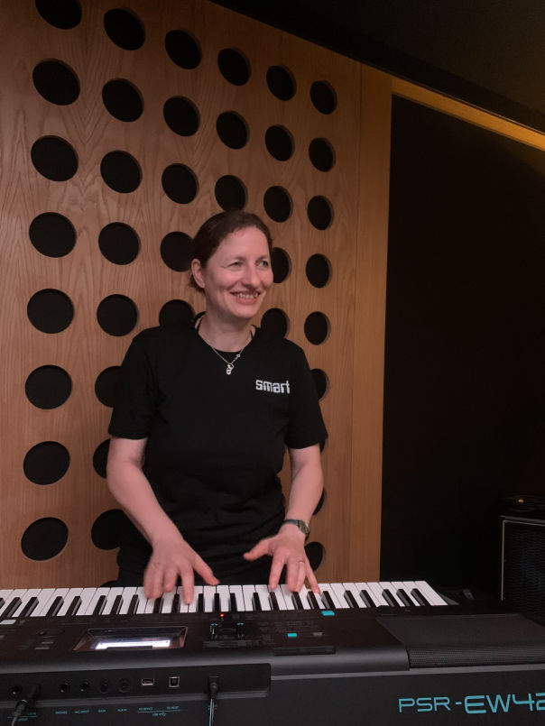 Viele Jahre hat Ivonne in einer Berliner Band am Schlagzeug ausschließlich für das rhythmische Fundament gesorgt. Aber bei smart spielt sie im Wechsel mit Annette auch Keyboard und kann so die vielen Jahre Klavierunterricht in ihrer Jugend doch noch gebrauchen.
